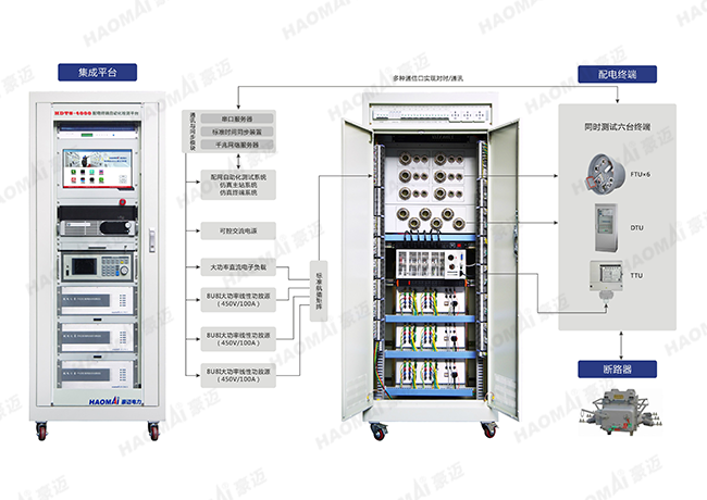 配電終端自動化檢測平臺可對配電終端進行功能測試、性能檢測、通信規(guī)約檢測,也可對一次設(shè)備施加高電壓大電流,實現(xiàn)對成套柱上開關(guān)及環(huán)網(wǎng)箱的成套設(shè)備性能和功能檢測。主要功能測試包括遙測、遙信、遙控、SOE分辨率、防抖、傳動、帶載能力、100A大電流檢測、穩(wěn)態(tài)錄波/暫態(tài)回放功能檢測、FA自動功能檢測等。主要性能檢測包括基本誤差檢測、影響量檢測、電源檢測、SNTP規(guī)約對時檢測等;通信規(guī)約檢測為基于安全防護的IEC101、IEC104通信規(guī)約檢測。