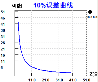 上述過程均由測試儀軟件實(shí)現(xiàn),并繪制誤差曲線反映出該CT自身特性。根據(jù)CT 的10%誤差曲線,我們還必須查閱流經(jīng)該CT 的最大短路電流和該CT 二次側(cè)所帶回路的阻抗 Z 。最大短路電流通常在整定計(jì)算時(shí)得出,是該CT 所在線路最大運(yùn)行方式下最嚴(yán)重短路時(shí)的短路電流。二次回路阻抗Z 可以用CTP測試儀裝置測量得到。通過銘牌或者給出的最大短路電流倍數(shù)M 和測得的回路阻抗Z ,查閱測試儀描繪出來的10%誤差曲線,若點(diǎn)( M ,Z )在所測的曲線下方,則滿足要求,說明在最嚴(yán)重短路情況下CT 的電流變換誤差小于10%。若點(diǎn)( M ,Z )在所測的曲線上方,說明在最嚴(yán)重短路情況下CT 的電流變換誤差大于10%,則不滿足要求。