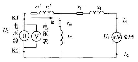 電壓法測套管CT的變比等效電路圖如下圖1所示。