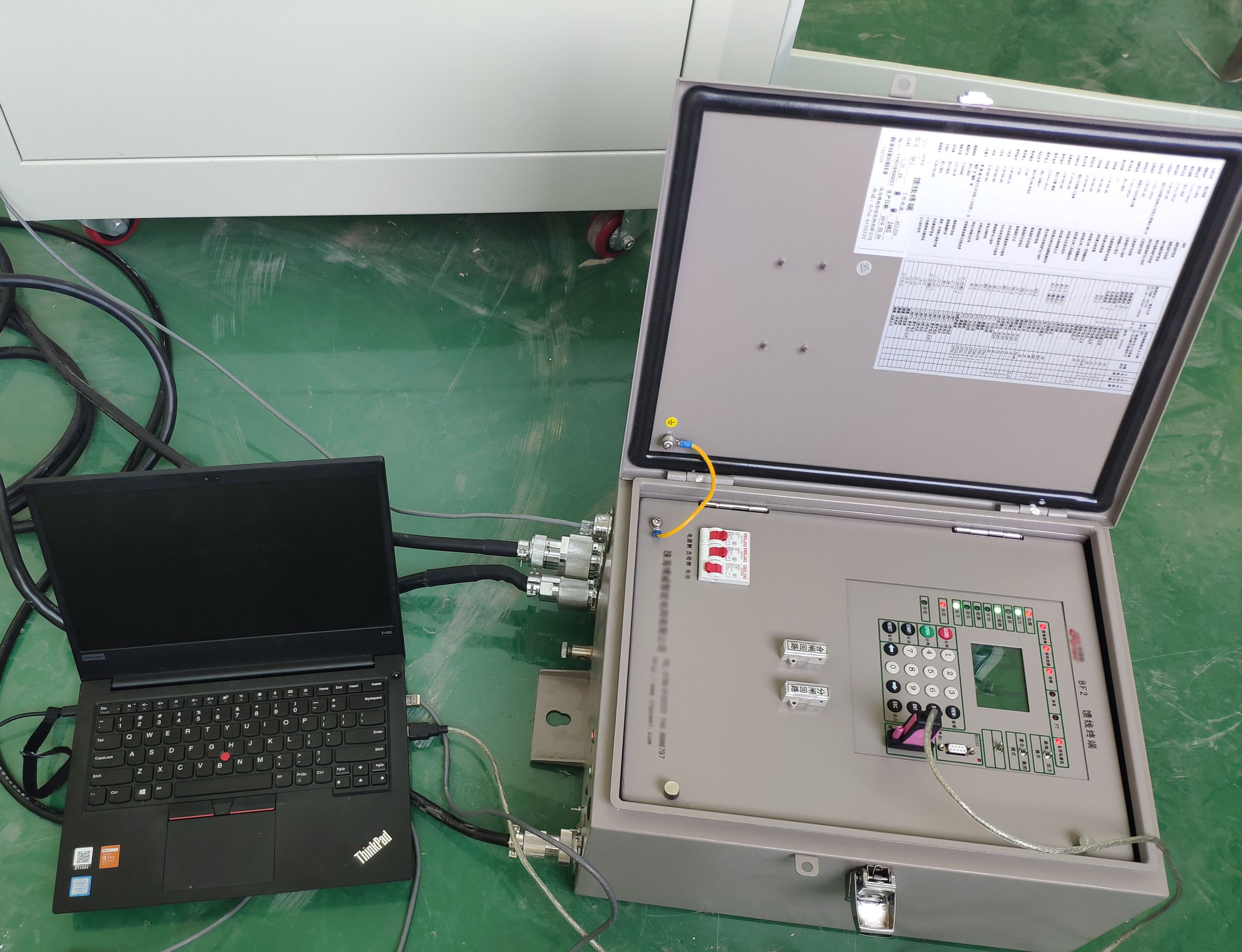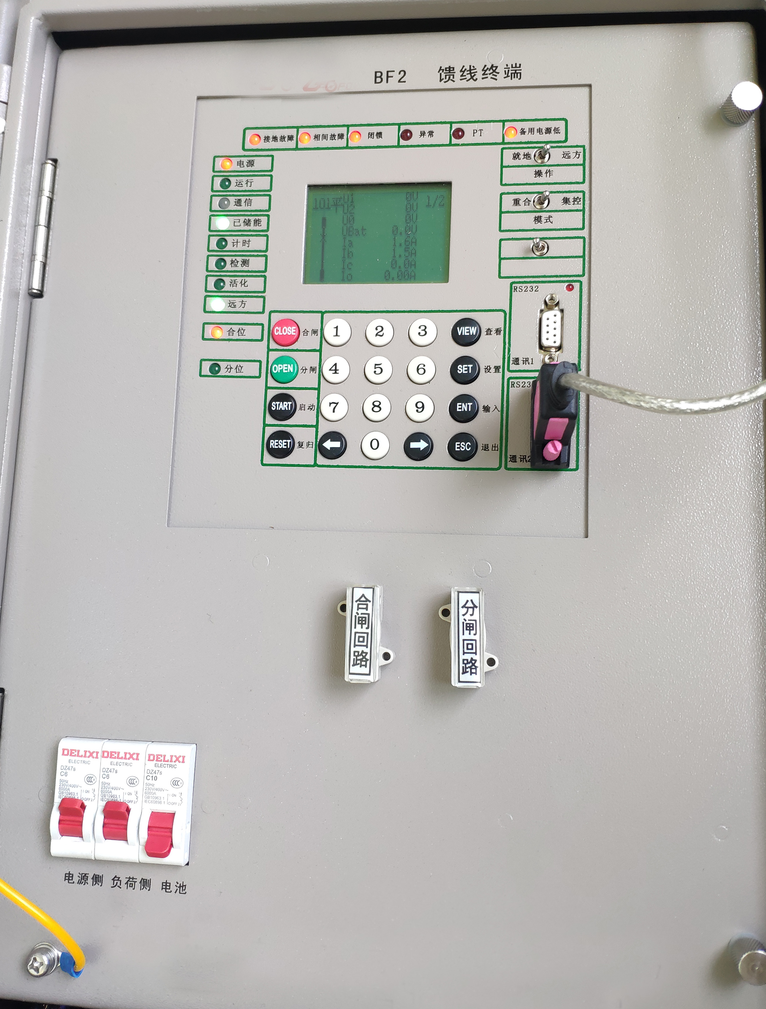測(cè)試對(duì)象: BF2 饋線終端(標(biāo)準(zhǔn)三遙型FTU,現(xiàn)場(chǎng)無斷路器,用測(cè)試平臺(tái)采集跳閘出口開關(guān)量,故障信息通過遙信、遙測(cè)上傳至平臺(tái)模擬主站)