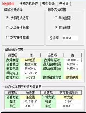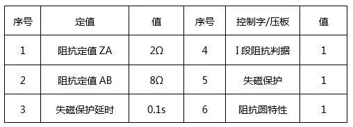整定參數(shù)設置: 整定阻抗為定值單上的值,可設為8Ω,角度為-90°。