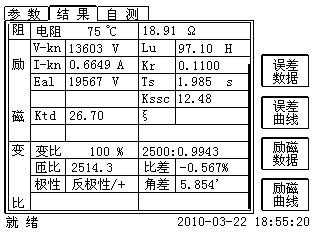 測(cè)試儀可根據(jù)給定負(fù)荷、勵(lì)磁曲線自動(dòng)計(jì)算準(zhǔn)確限值。