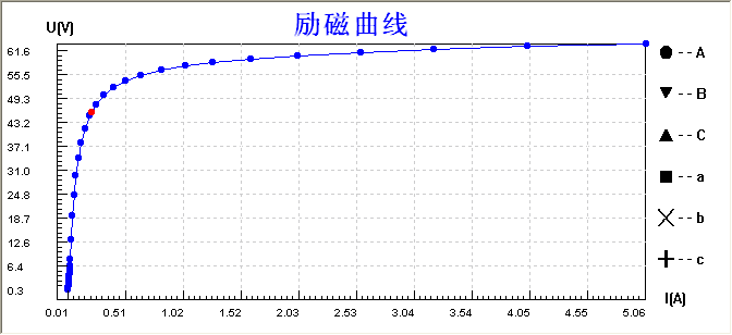 根據(jù)勵(lì)磁曲線和CT的二次繞組直阻,測(cè)試儀自動(dòng)計(jì)算出CT誤差曲線, 5Pnn的CT用5%誤差曲線,10Pnn的CT用10%誤差曲線。