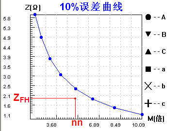 5Pnn和10Pnn的CT可認(rèn)為最大電流倍數(shù)為nn,二次回路阻抗為ZFH,查閱曲線上(nn,ZFH )位置若處于曲線下方,則該CT滿足使用需求,若位于曲線上方,則不合格。