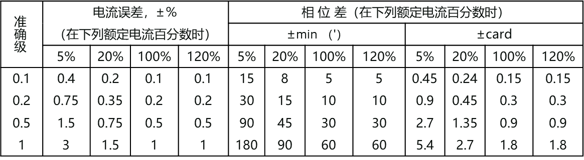 根據(jù)GB1208-2006及DL/T866-2004規(guī)定計(jì)量CT誤差限值不得超過下表: