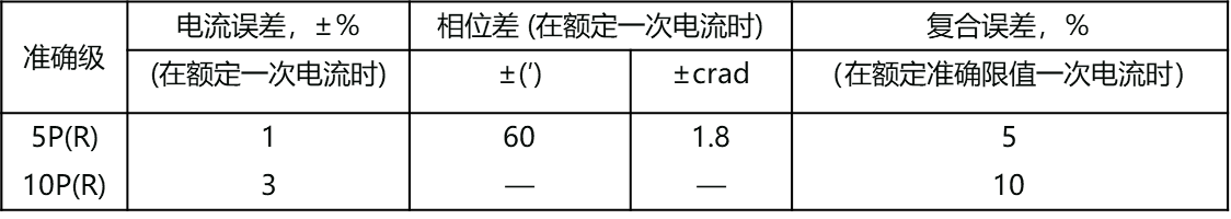 GB1208-2006及DL/T866-2004規(guī)定P級(jí)、PR級(jí)CT誤差限值不得超過下表: