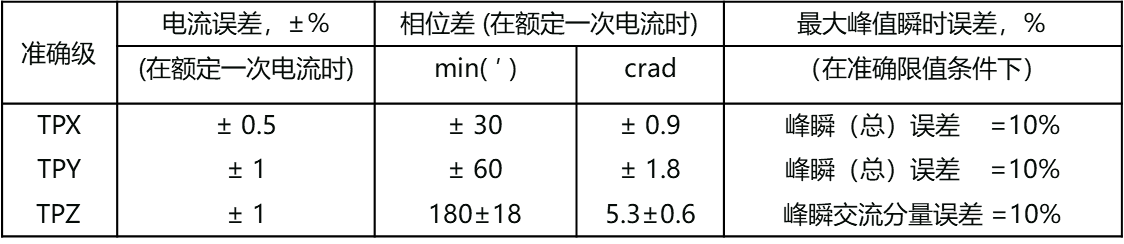 GB16847-1997及DL/T866-2004規(guī)定TP級(jí)CT誤差限值不得超過下表: