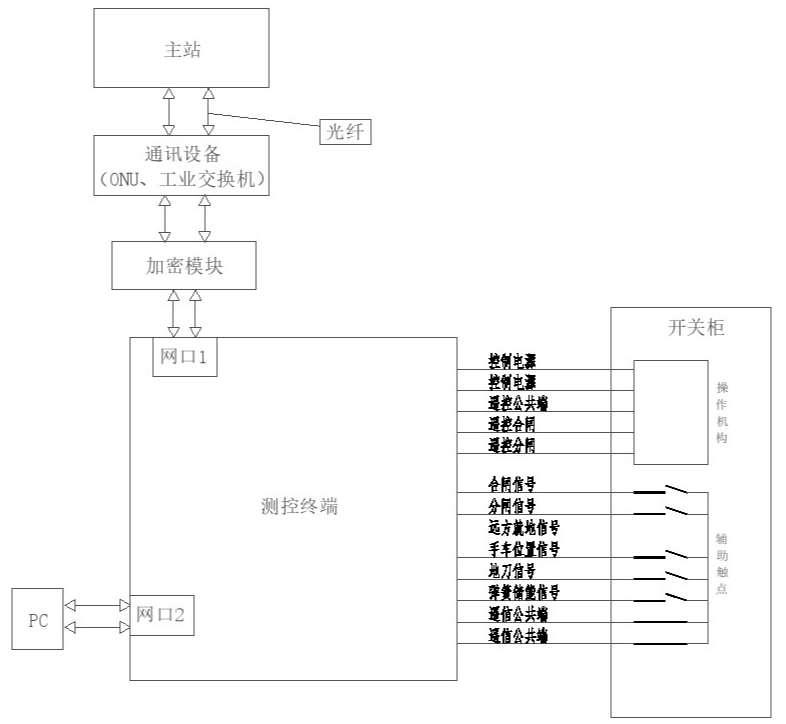 DTU測(cè)控終端采集開關(guān)柜(環(huán)網(wǎng)柜)的遙控、遙信、遙測(cè)信號(hào),利用通訊設(shè)備和光纖將三遙信號(hào)上傳至主站從而實(shí)現(xiàn)三遙功能。