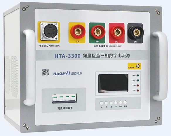 HTA-3300 向量檢查三相數(shù)字電流源三相交流最大輸出 300A ,輸出頻率 50Hz ,通過無線方式與無線相位基準源同步,可三相同時完成繼電保護向量檢查。