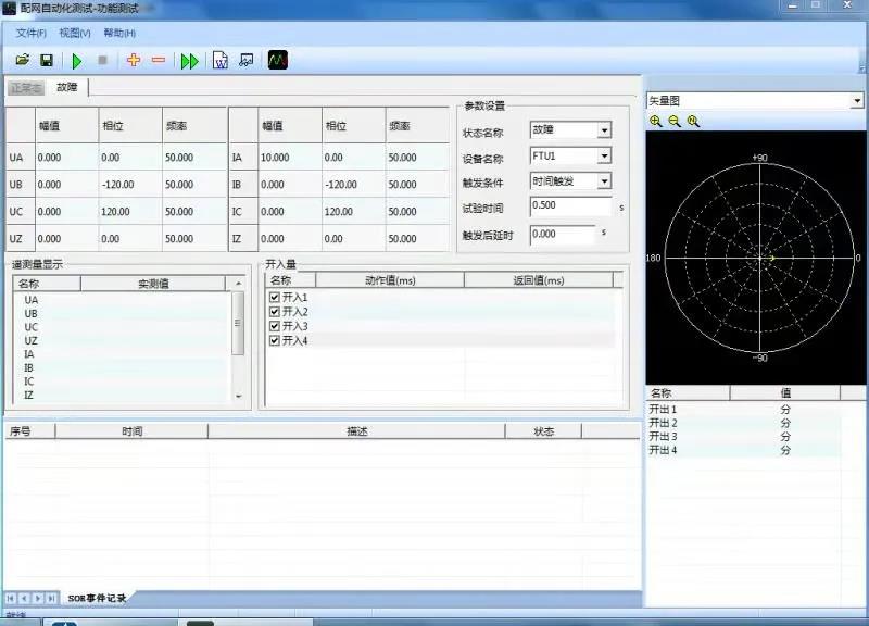 在不停電的狀態(tài)下,通過(guò)FA虛擬終端軟件虛擬一臺(tái)終端,并接入主站的前置交換機(jī),利用軟件模擬故障功能觸發(fā)事故信號(hào)、變電站出線開(kāi)關(guān)分閘信號(hào),以啟動(dòng)配電網(wǎng)自動(dòng)化系統(tǒng)饋線自動(dòng)化功能。