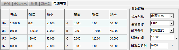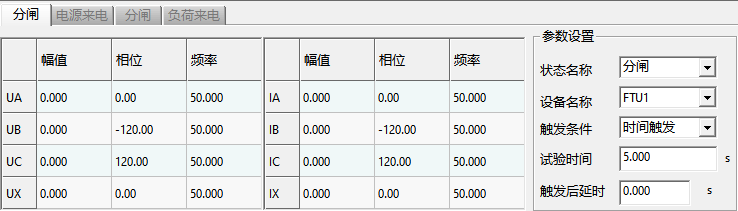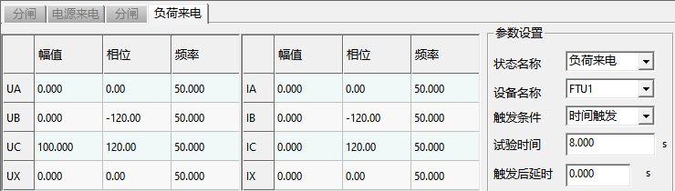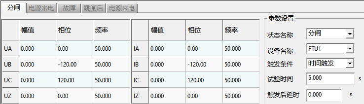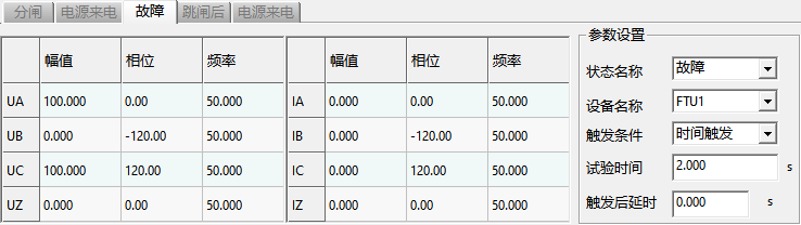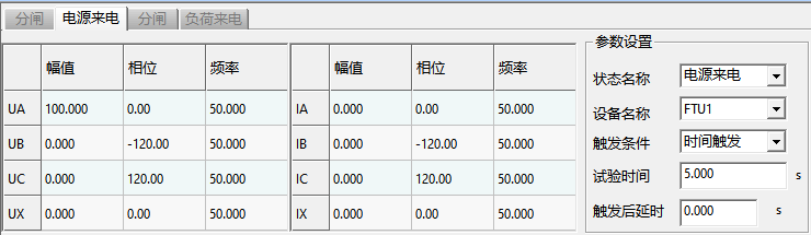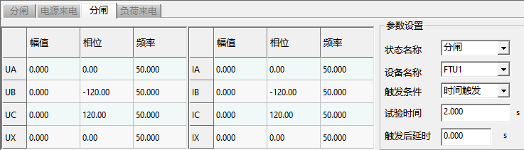 配電之星-P2200 配電自動(dòng)化終端測(cè)試儀A相電壓作為FTU的電源側(cè)電壓,C相電壓作為FTU的負(fù)荷側(cè)電壓。