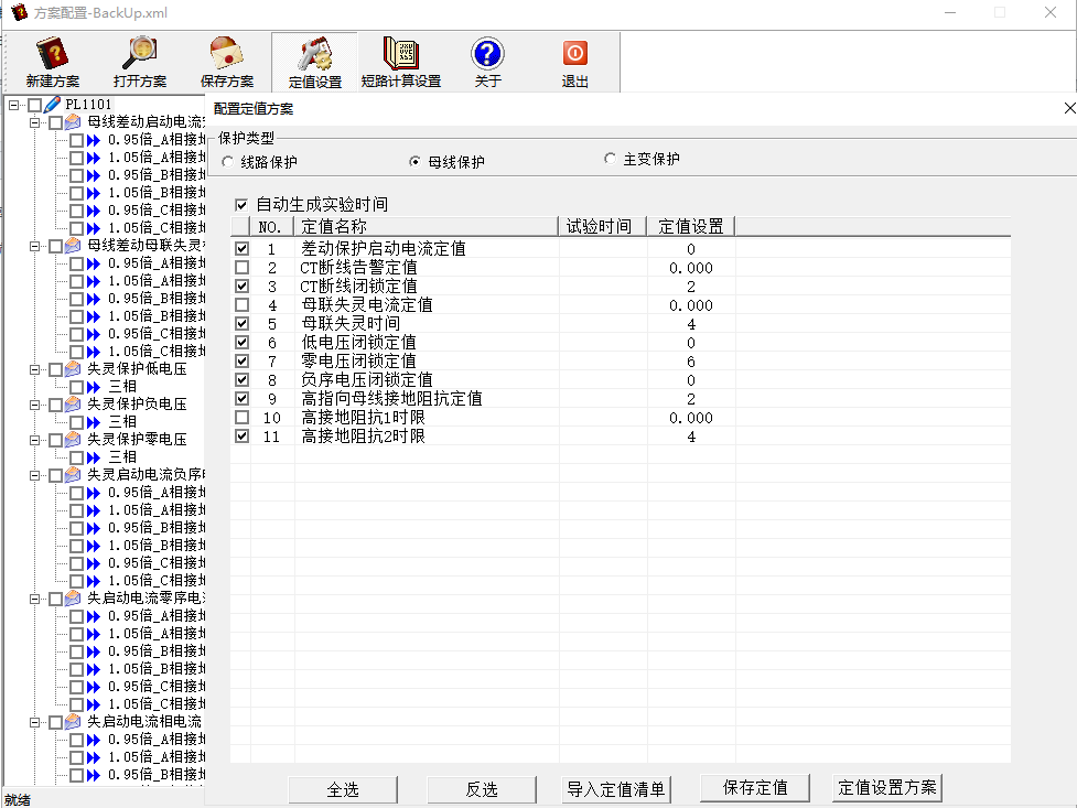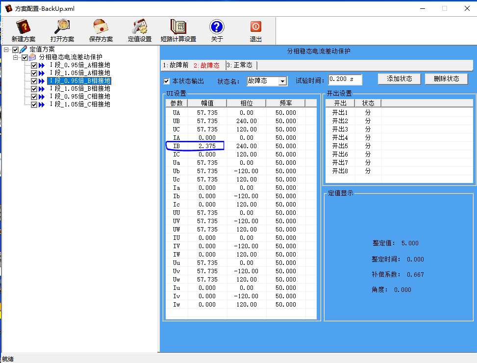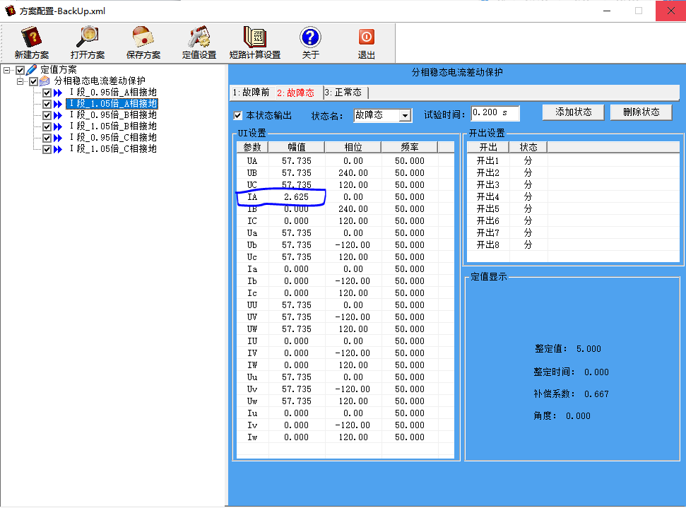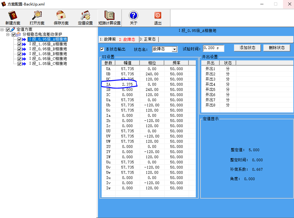自動生成故障前、故障態(tài)和正常態(tài)三種狀態(tài),針對0.95倍、1.05倍以及ABC三相不同的測試項目,生成不同的故障態(tài)結(jié)果,結(jié)果可進行手動修改。