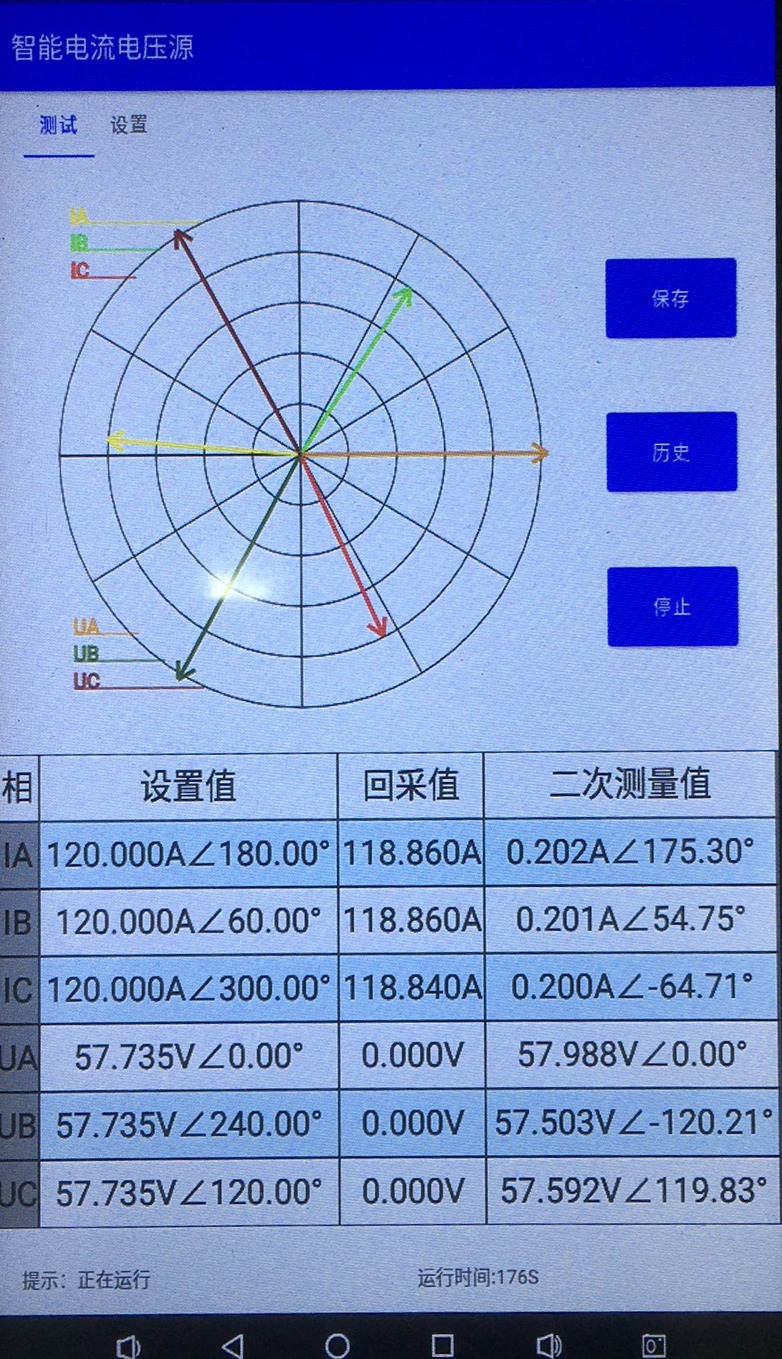 首先將電流源與電壓源上電,設(shè)置到遙控操作狀態(tài),遙控主機(jī)會(huì)自動(dòng)搜索電流源與電壓源,各相電流與電壓設(shè)置成不同的幅值狀態(tài),檢查電流電壓相序是否正確。
