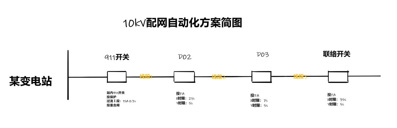 下面根據(jù)此次饋線自動(dòng)化FA調(diào)試的一次線路圖,模擬線段2即D02和D03之間發(fā)生永久短路故障。