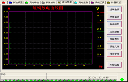 點(diǎn)擊開(kāi)始試驗(yàn),放電過(guò)程中可以通過(guò)界面右側(cè)菜單欄選擇需要查看的數(shù)據(jù)。