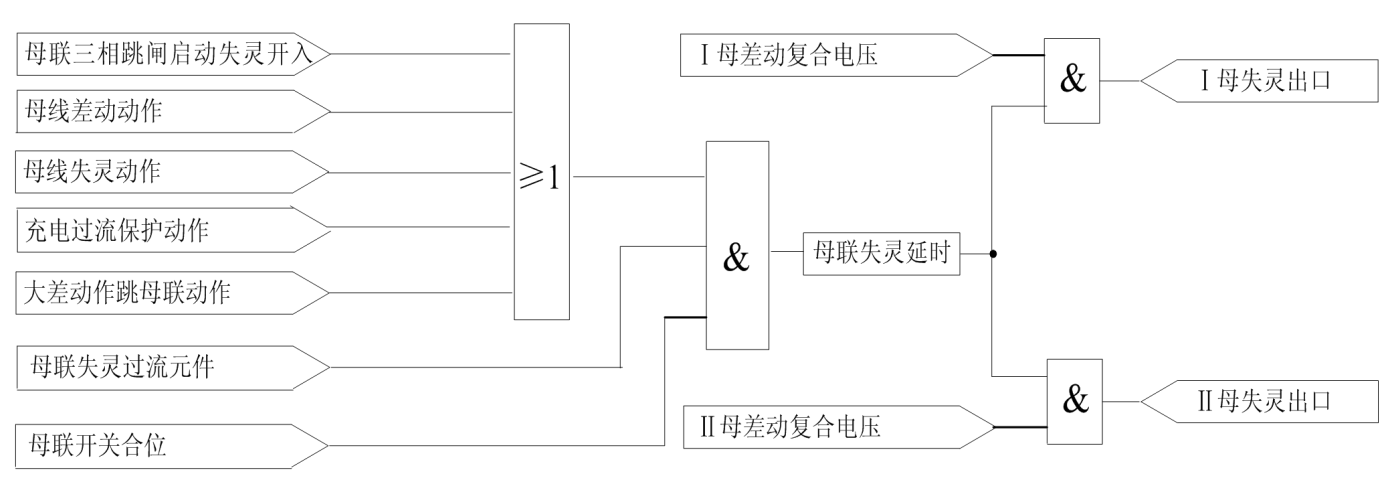 ?BP-2C母線保護(hù)規(guī)定,當(dāng)保護(hù)向母聯(lián)(分段)開關(guān)發(fā)出跳令后,經(jīng)整定延時(shí),若大差電流元件不返回,母聯(lián)(分段)電流互感器中仍然有電流,則母聯(lián)(分段)失靈保護(hù)應(yīng)經(jīng)母線差動(dòng)復(fù)合電壓閉鎖后切除相關(guān)母線各支路。 只有母聯(lián)(分段)開關(guān)作為聯(lián)絡(luò)開關(guān)時(shí),才啟動(dòng)母聯(lián)(分段)失靈保護(hù)。 母聯(lián)失靈保護(hù)固定投入,動(dòng)作邏輯圖: