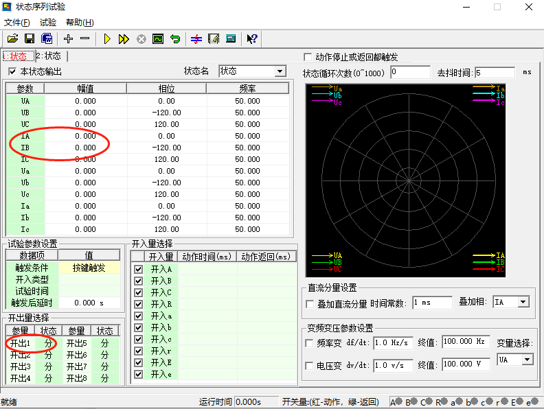 在工具欄中點(diǎn)擊開始進(jìn)行試驗(yàn)。 觀察保護(hù)裝置面板信息,顯示面板“報(bào)警”指示燈滅后,點(diǎn)擊工具欄開始按鍵切換故障狀態(tài),此時(shí)保護(hù)動(dòng)作。
