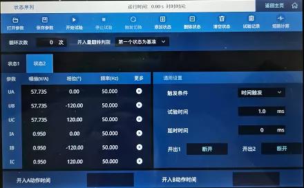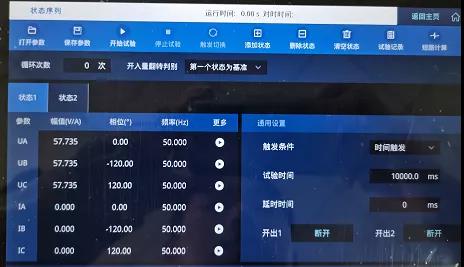 在“狀態(tài)序列”菜單里,添加故障前、故障兩個狀態(tài),狀態(tài)一設置同上面正常狀態(tài)參數(shù)設置。