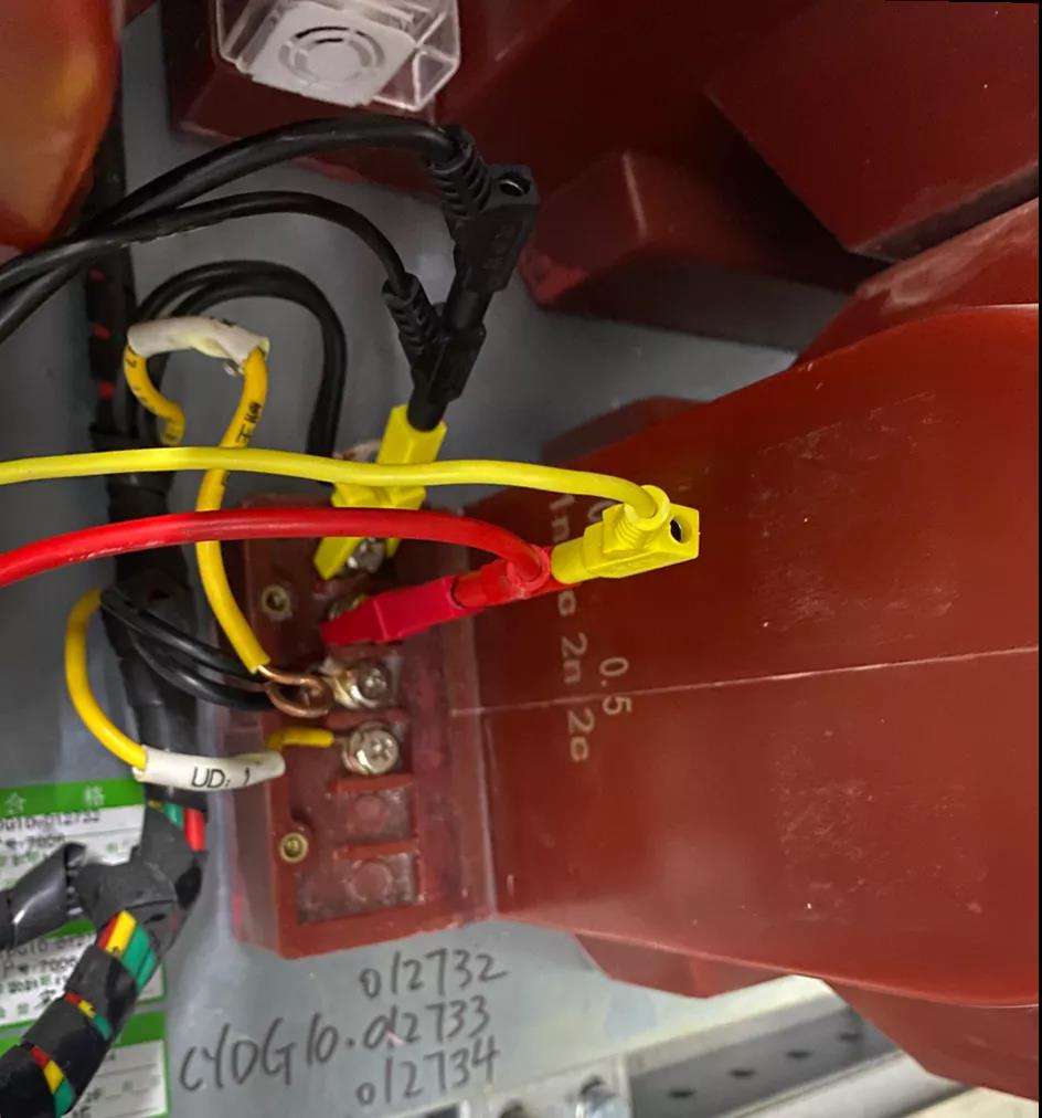 取兩根二次試驗(yàn)導(dǎo)線,將紅色的一組接在S1、S2上,黃色的一組接在M1、M2上。