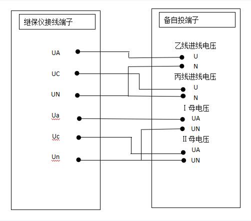 PCS-9654為智能站備自投裝置,其采樣均為直采電流電壓,開關(guān)量為GOOSE開入開出,因此接線時(shí)按照常規(guī)接線電流電壓,光纖接GOOSE量即可。