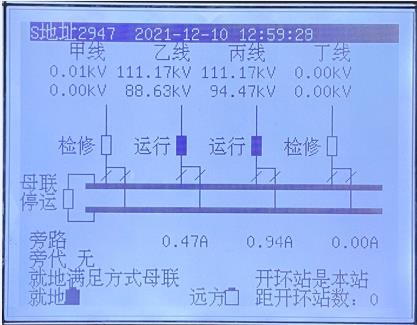 設(shè)置乙線進(jìn)線無壓,Ⅰ母無壓,此時(shí)保護(hù)裝置乙線斷路器DL1跳閘,但乙線斷路器此時(shí)位置仍為合位,即開出1合,丙線斷路器為合位,開出2合,分段開關(guān)為分位,開出3分。