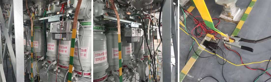 將HTV-6000 三相數(shù)字式智能高電壓源接至主變#4的220kV側(cè),接在2308開關(guān)的上端,2308斷開,合上230斷路器、2301開關(guān),將電壓接到220kV的1母線上,合上互01PT的開關(guān),使其過母線的PT,即可在保護(hù)裝置上查到二次電壓值。將HTA-3300 三相數(shù)字式智能大電流源接到儲(chǔ)存線,接到2298開關(guān)的上端,合上2298、229、2301斷路器或開關(guān),將電流接到220kV的2母線上,如測試的是#3號主變高壓側(cè)220kV間隔,則合上2268、226、2262,使電流從存儲(chǔ)線流到#3號主變高壓側(cè)間隔上,形成回路,即可在保護(hù)裝置上查到此間隔的二次電流值。
