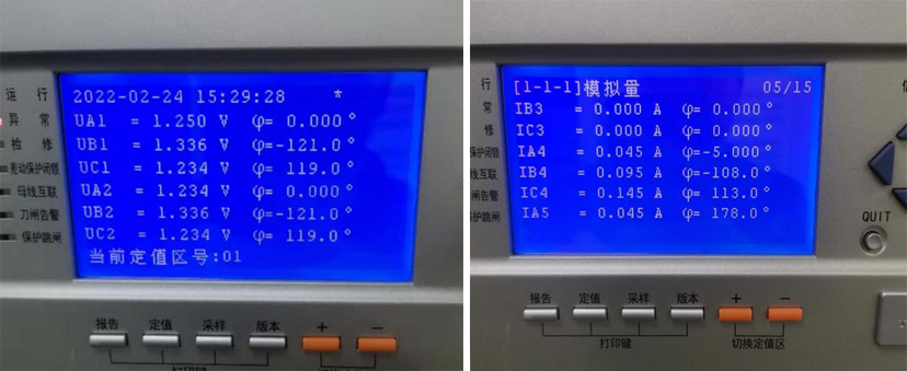 首先測試分相是否正確。加三相不平衡的電壓電流,查看二次采樣值A(chǔ)、B、C三相是否對應(yīng),再計(jì)算CT、PT的變比,通過與保護(hù)裝置上讀取的值進(jìn)行對比,判斷變比是否正常。