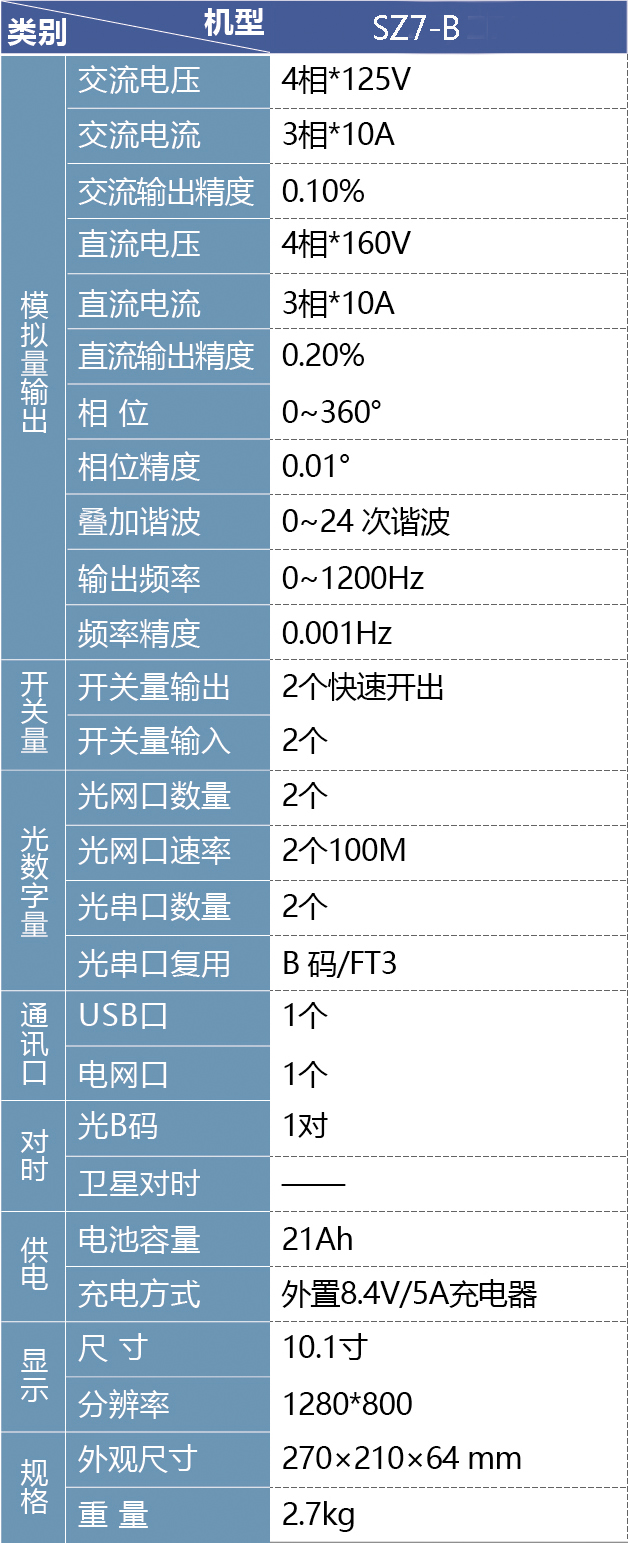 SZ7-B二次儀表是一款具備4相電壓3相電流高精度模擬量輸出及IEC61850光數(shù)字信號(hào)輸出的電力二次保護(hù)系統(tǒng)專用測(cè)試儀器。光數(shù)字部分基于IEC61850標(biāo)準(zhǔn)開(kāi)發(fā),可用于電力系統(tǒng)二次保護(hù)系統(tǒng)光數(shù)字SV/GOOSE報(bào)文收發(fā)及分析;模擬量部分輸出高精度可控電流與電壓,用于智能變電站二次系統(tǒng)保護(hù)、測(cè)控、合并單元、智能終端等設(shè)備功能性能調(diào)試。該設(shè)備同時(shí)支持“模擬量+GOOSE”保護(hù)裝置的調(diào)試。支持北斗、GPS、B碼對(duì)時(shí),多機(jī)同步輸出。