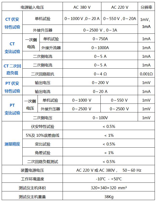 裝置可用于CT、PT的伏安特性曲線、10%和5%誤差曲線、變比、極性、角差測量、二次側(cè)回路負載測試、二次側(cè)回路檢查、退磁功能、二次繞組交流耐壓等試驗。