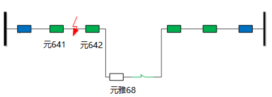 模擬10kV元六線主線元641與元642開關(guān)之間故障,故障點(diǎn)如下圖: