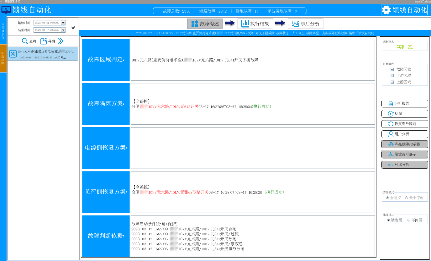6)主站廠家、局方、武漢豪邁測(cè)試工程師通過(guò)告警窗核查主站系統(tǒng)采集故障信號(hào)是否完整并及時(shí),故障分析后彈出的故障隔離策略是否正確。