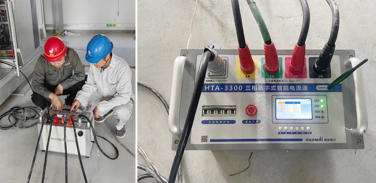 近期,國網(wǎng)某電力公司即將投運的220kV變電站使用HTA-3300 三相數(shù)字式智能大電流源搭配HTV-6000 三相數(shù)字式智能高電壓源,完成站內(nèi)GIS設(shè)備的相量檢查與極性校驗工作。