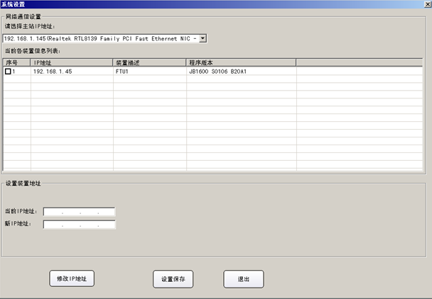 2)點(diǎn)擊主界面“網(wǎng)終配置”進(jìn)入網(wǎng)絡(luò)通信配置。主要通訊網(wǎng)卡選擇,檢查下位機(jī)通訊是否正常,版本是否正確,點(diǎn)擊保存后退出。