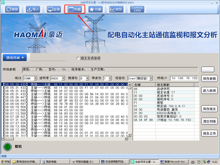 4)確認(rèn)已成功連接主站。 在下側(cè)對(duì)話(huà)框出現(xiàn)鏈路通訊報(bào)文正常后,并確認(rèn)報(bào)文無(wú)異常。