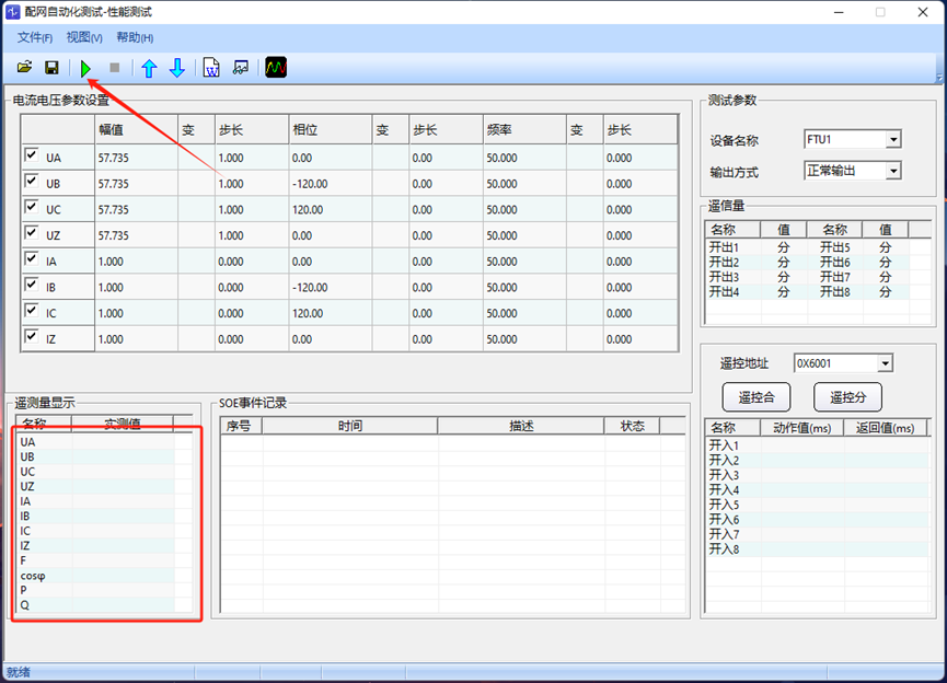 1)使用前需保證主站服務(wù)開(kāi)啟,需要主站確認(rèn)待檢測(cè)終端(FTU)IP與本設(shè)備IP已進(jìn)入調(diào)試區(qū),方可進(jìn)行后續(xù)試驗(yàn)。
