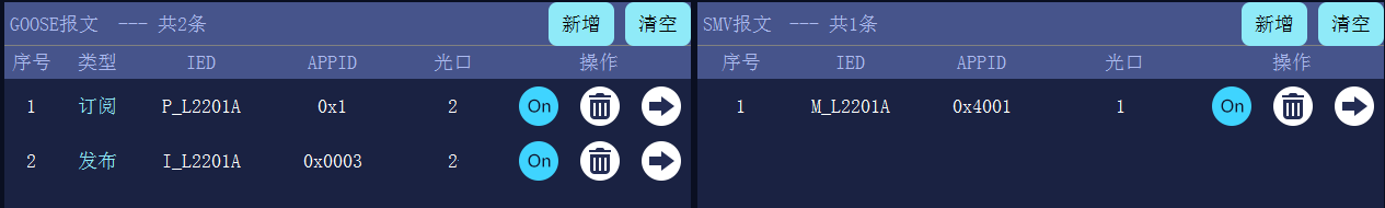 ①解析SCD文件: 61850打開SCD文件,找到保護(hù)裝置IED名稱,也可通過搜索IED名稱更快定位。 右邊控制塊信息顯示所選IED的GOOSE及SV信息,左下角顯示所導(dǎo)入的GOOSE,右下角顯示所導(dǎo)入的SV。