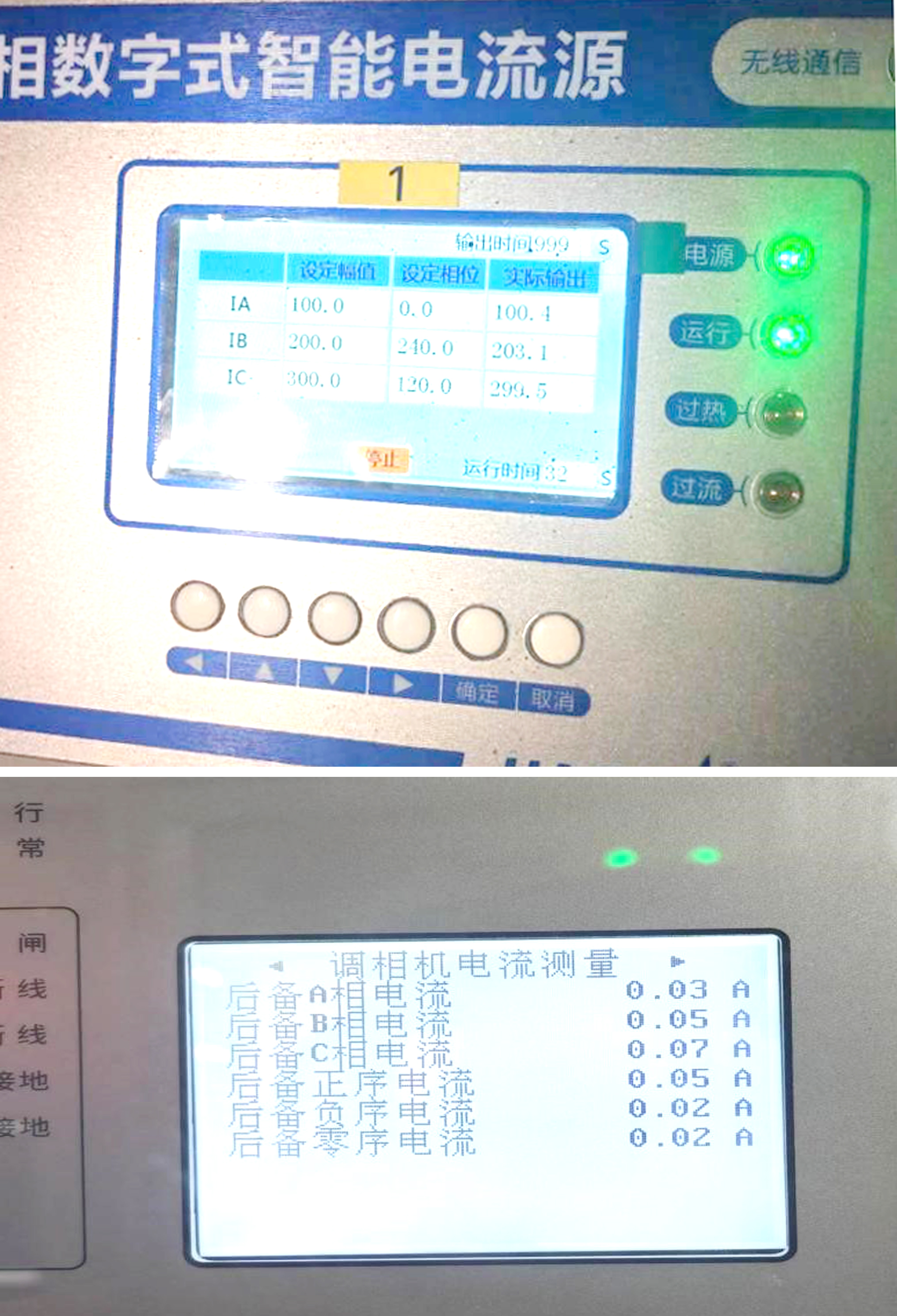 設(shè)置A、B、C三相正序200A電流輸出,查看保護(hù)裝置和變電站系統(tǒng)后臺(tái)采樣信息。