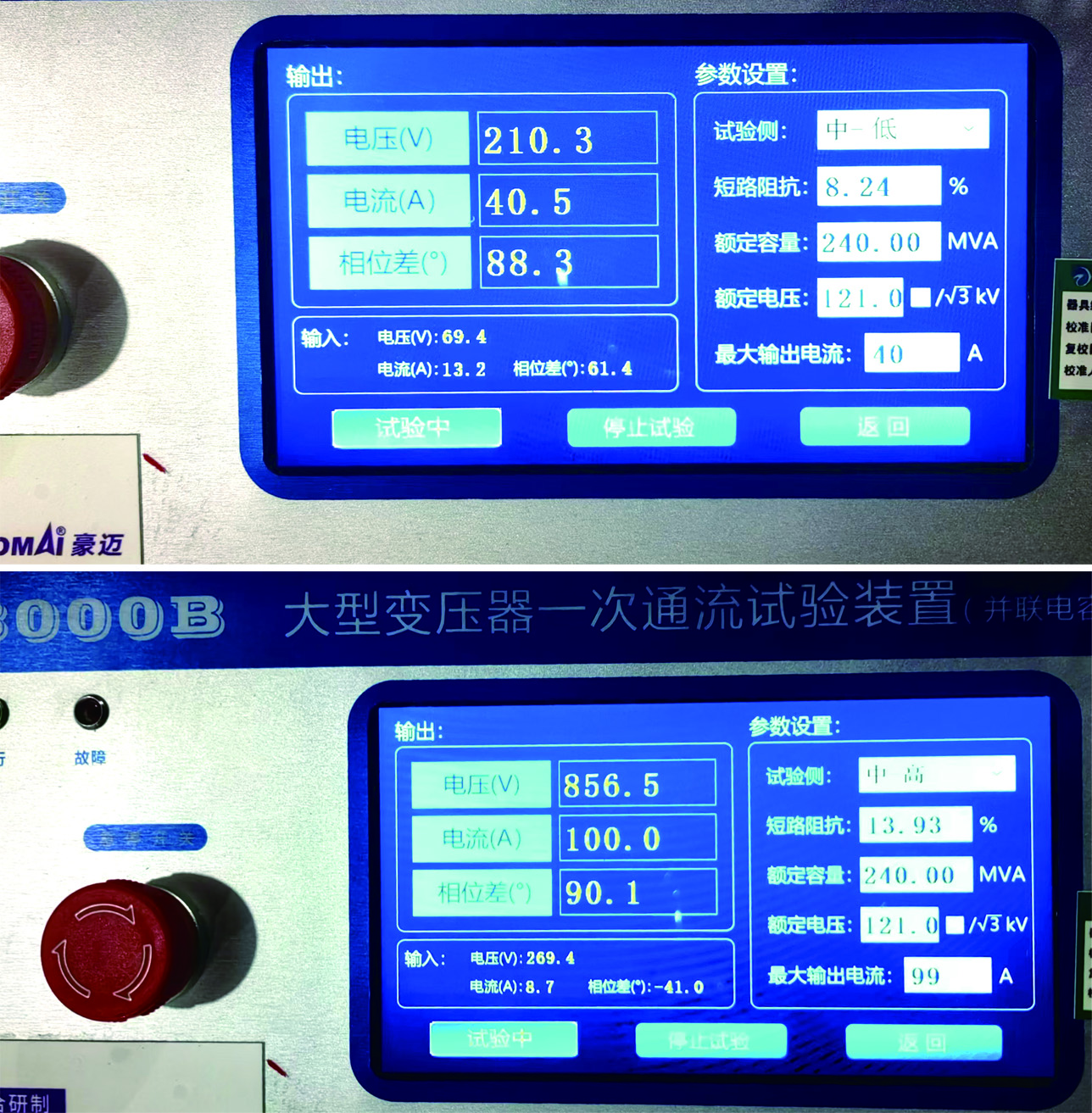 HTB-8000 大型變壓器一次通流加壓新型試驗裝置 由江蘇省送變電有限公司與武漢豪邁聯(lián)合研制, 采用電容補償方法,在對試驗電源要求很低的條件下,大幅提高輸出的試驗電流和輸出功率,實現(xiàn)對大型(500kV及以下)電力變壓器進行一次側(cè)大電流通流試驗,可穿過變壓器對兩側(cè)進行通流試驗(對側(cè)短接),對變壓器兩側(cè)一次回路進行通流通壓試驗。 完成對變壓器差動回路、母差回路、母線/間隔回路等進行一二次回路向量校核、互感器變比檢查、保護向量校核等工作。