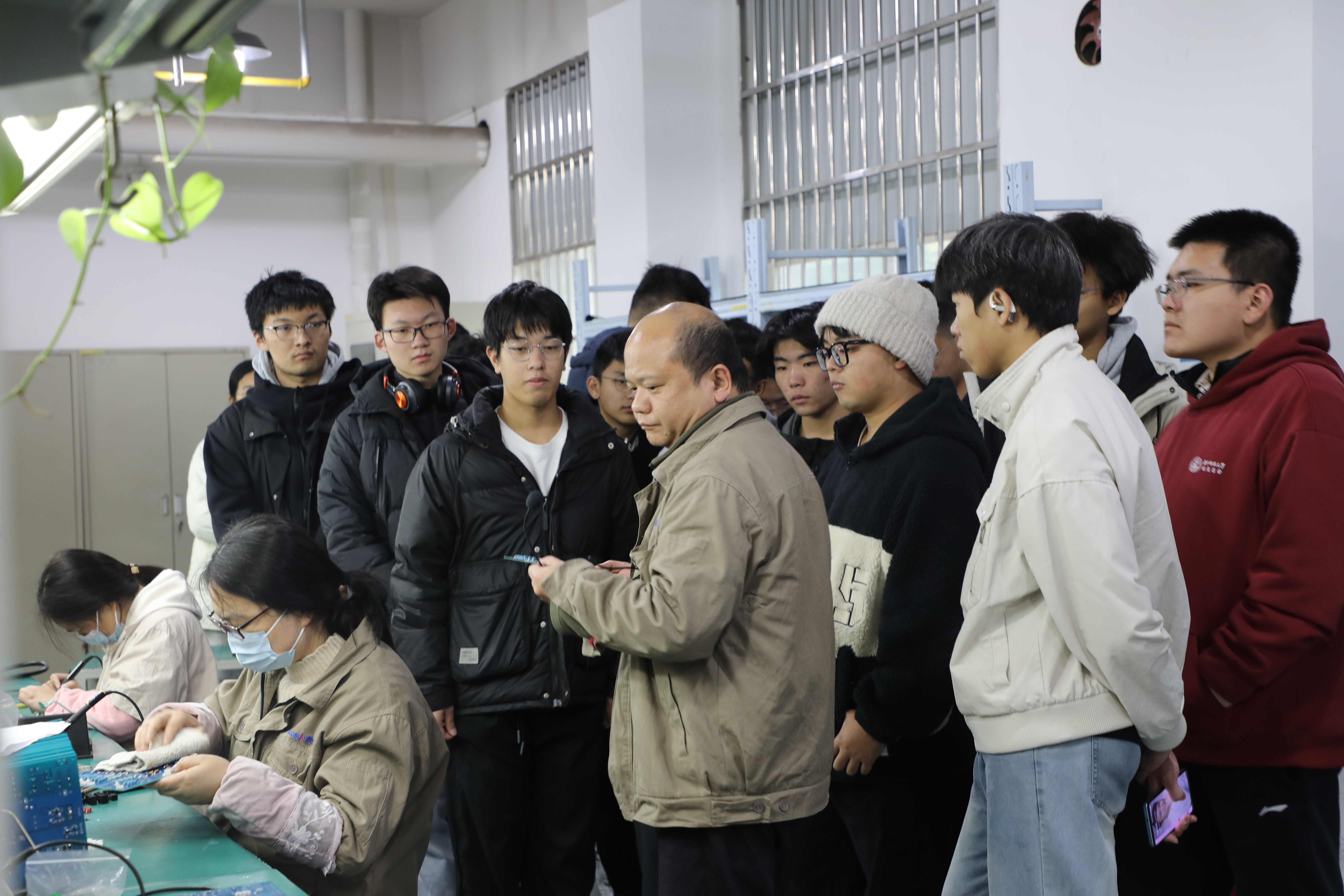 12 月 4 日,華中科技大學(xué)電氣與電子工程學(xué)院 30 余名師生走進(jìn)武漢豪邁,開啟了一場(chǎng) 別開生面 的實(shí)踐學(xué)習(xí)之旅。作為 “湖北高校省級(jí)實(shí)習(xí)實(shí)訓(xùn)基地”,武漢豪邁持續(xù)深化產(chǎn)學(xué)研協(xié)同育人機(jī)制,與華中科技大學(xué)、武漢工程大學(xué)、武漢紡織大學(xué)等高校構(gòu)建了長(zhǎng)期穩(wěn)定的技術(shù)交流與實(shí)習(xí)實(shí)訓(xùn)合作體系 。
