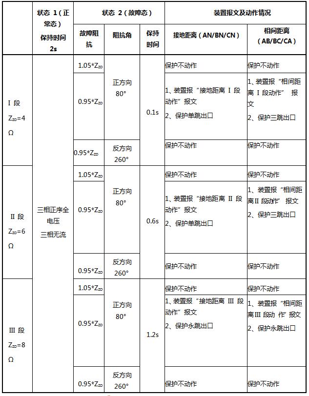 距離保護(hù)測試試驗(yàn)數(shù)據(jù)結(jié)果